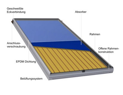 - Kollektorrahmen aus Aluminium silber oder schwarz eloxiert