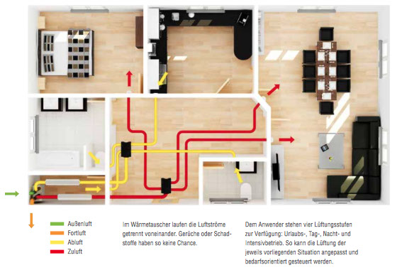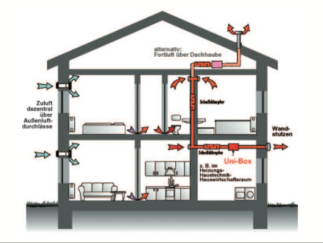 Über Zuluftventile und Überstromöffnungen wird das komplette Haus
