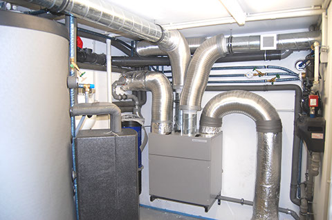 Zentralgerät einer Lüftungsanlage mit Wärmerückgewinnung in einem Passivhaus