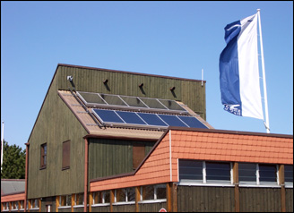 Zwei Sonnenkollektoren mit je 6m2 bereiten das Warmwasser für die Gästeduschen im Segelhafen in Kiel-Friedrichsort