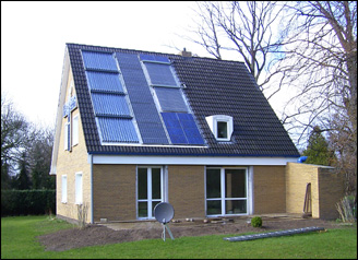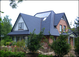 Flachkollektor mit einer Fläche von 10,4m² auf der Dachfläche eines Einfamilienhauses